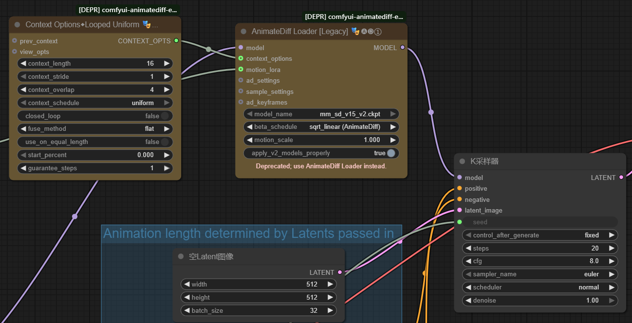 | context_options | 采样时使用的可选上下文窗口;如果输入,动画总长度没有限制。如果未输入,动画长度将限制为 24 或 32 帧,具体取决于运动模型。 |