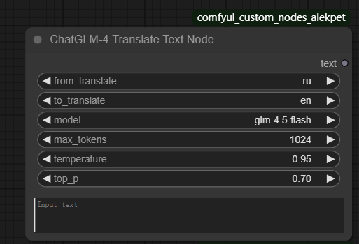 节点功能:该节点利用 ChatGLM 模型,能够轻松实现文本从一种语言到另一种语言的翻译