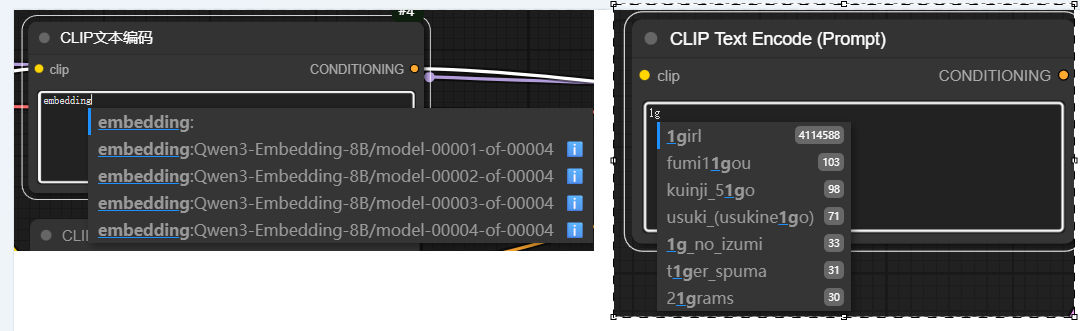 比如输入embedding 能够弹出提示,当加载自定义提示词时,在clip文本编码器中输入提示词也会有提示