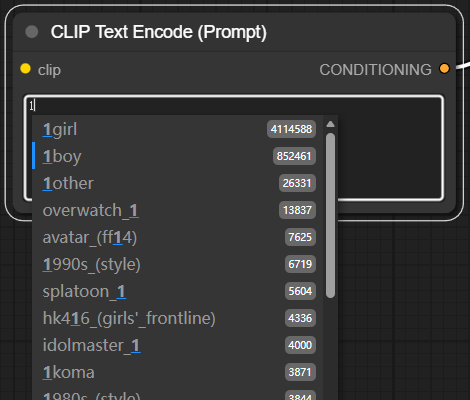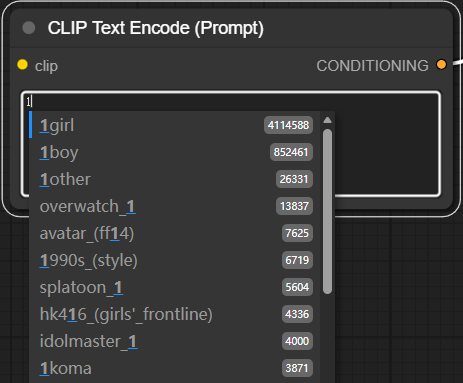 当通过自动补全完成一个提示词时,就会自动加入逗号,比如:"1girl, "