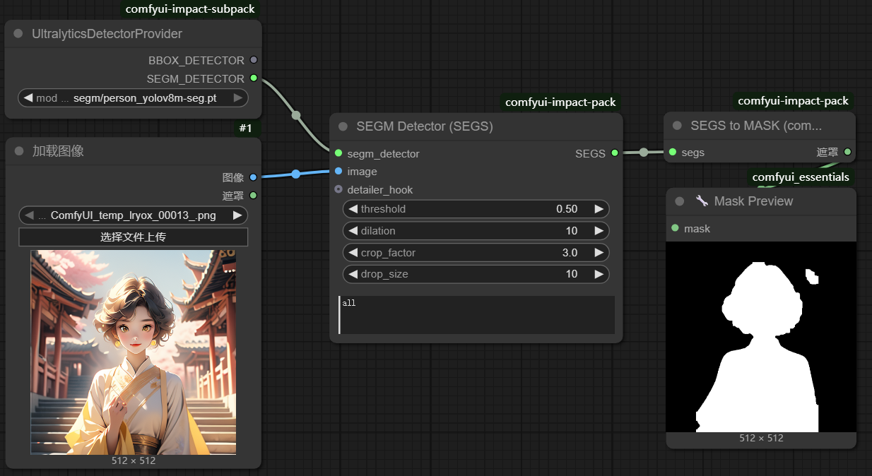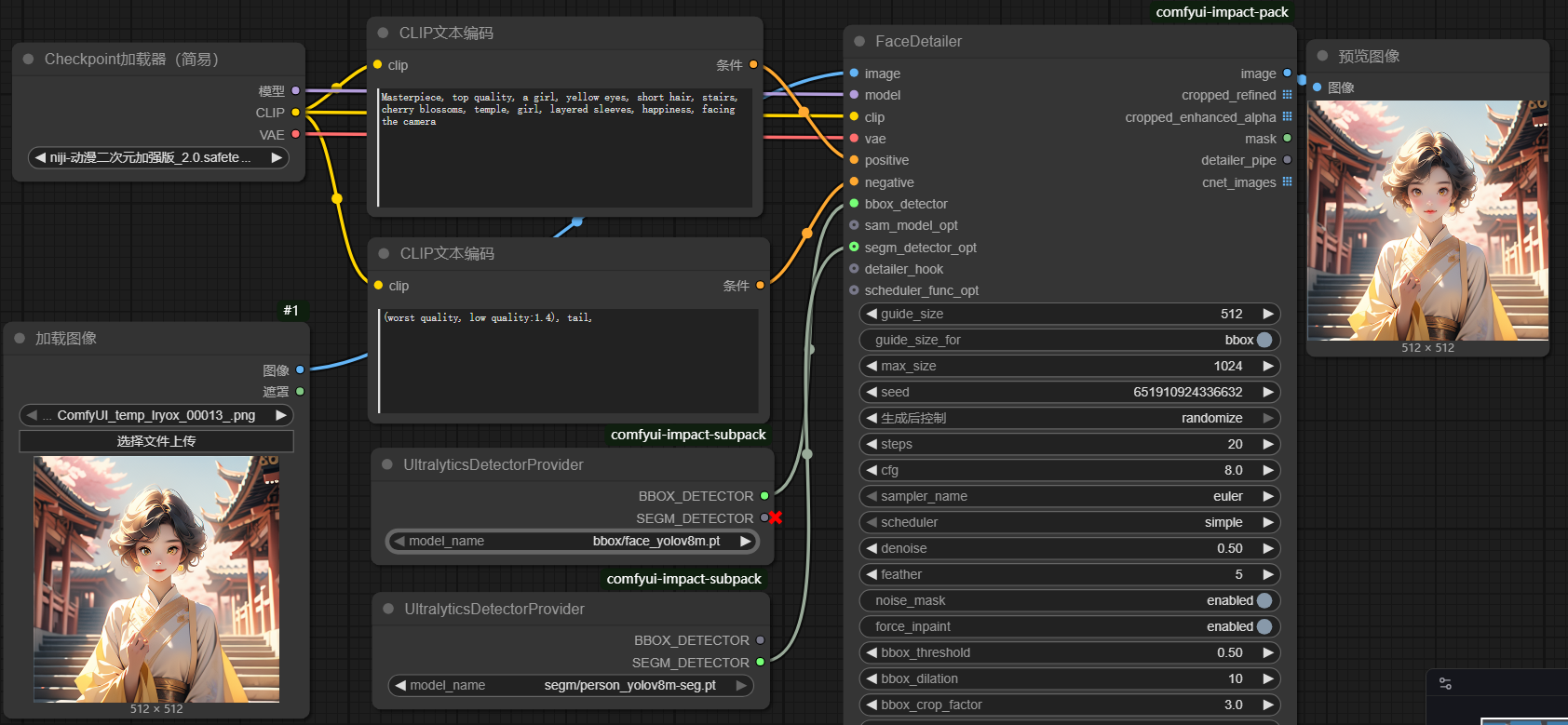 该节点用的最多的还是搭配FaceDetailer节点做人物的脸部优化任务。