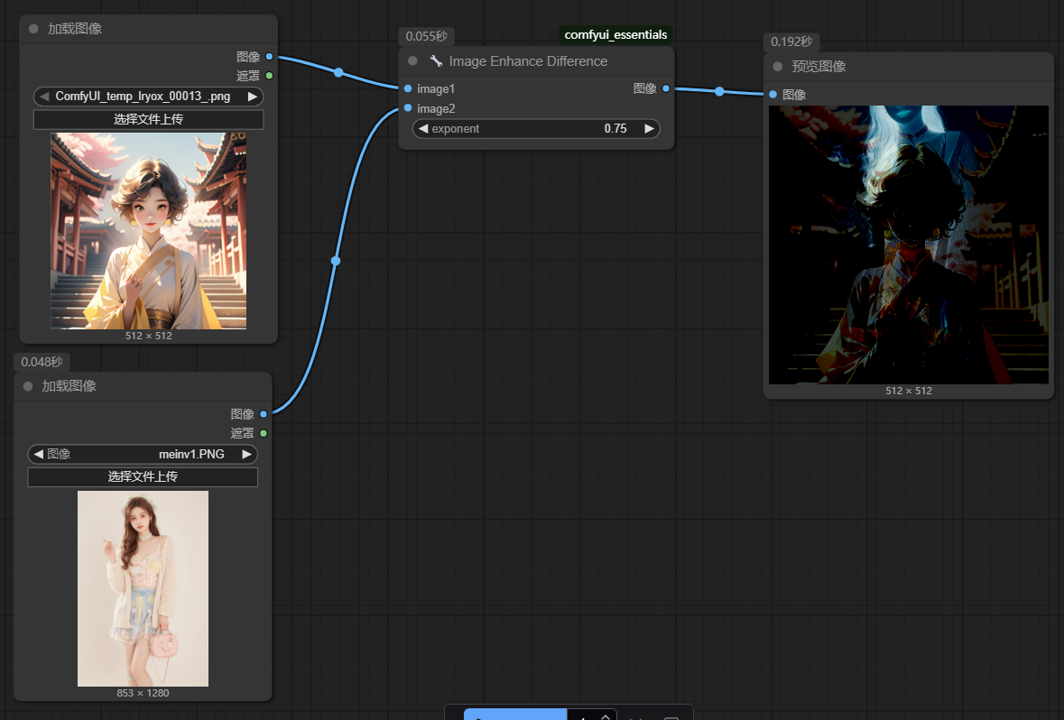 这个节点用来 比较两张图片的差异,并且 增强这些不同的地方。