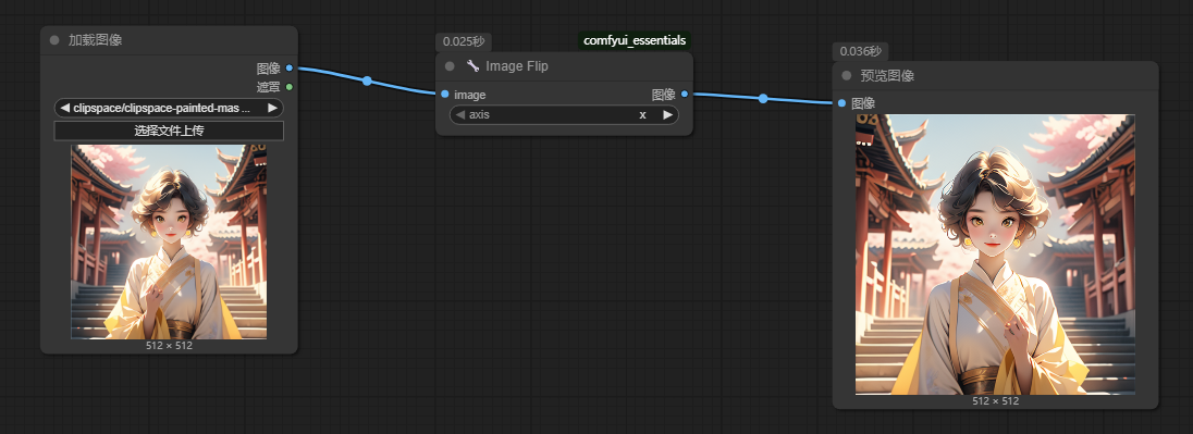 这个节点用于对图片做 翻转(mirror / flip) 处理。你可以让图片水平翻转、垂直翻转,或同时水平和垂直翻转。