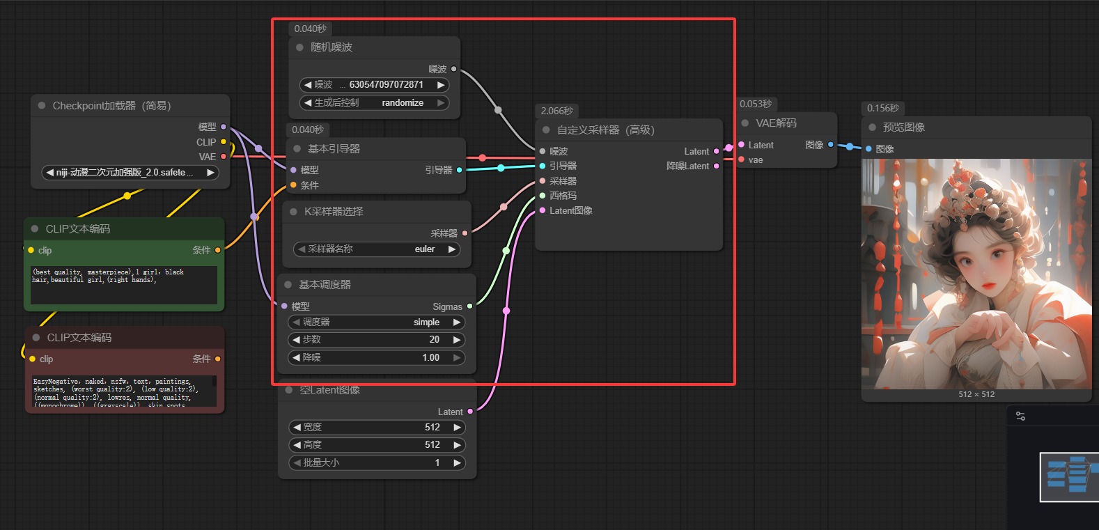 自定义采样器(高级)也是把K采样器做了才分,不过没有看到负面提示词的输入,具体的节点组合就是下面的图片