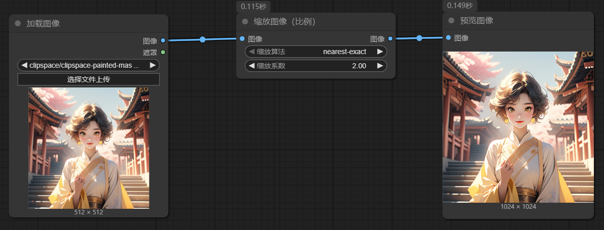节点功能:通过倍数进行图像的放大,和Upscale Image原理一致。
