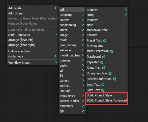 该命令会将 SDXL 提示样式工具库克隆到你的目录中。你现在应该可以访问并使用这个仓库的节点。ComfyUI/custom_nodes/