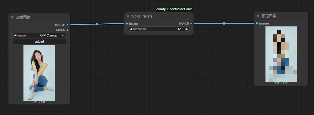 节点功能:该节点是一个用于ControlNet的颜色特征提取节点,能够保留图像的整体色彩布局和结构信息,用于引导生成图像的配色风格。