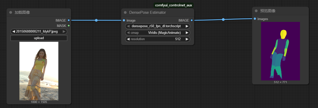 | cmap | 控制输出人体贴图的颜色映射风格。Viridis 用于 MagicAnimate 系列模型,Parula 常用于 CivitAI 模型等。 |